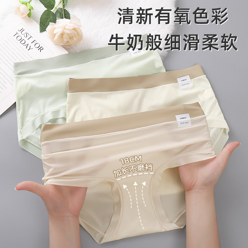冰丝新款女士内裤纯棉10A益菌加长裆中腰薄款透气少女裸感三角裤
