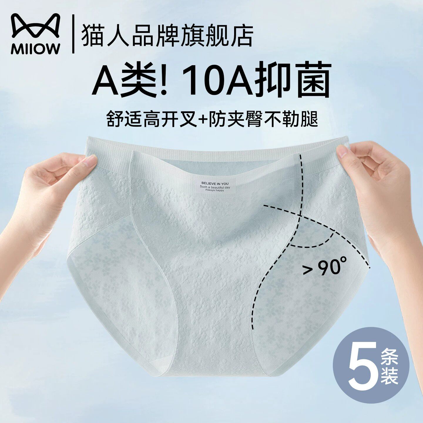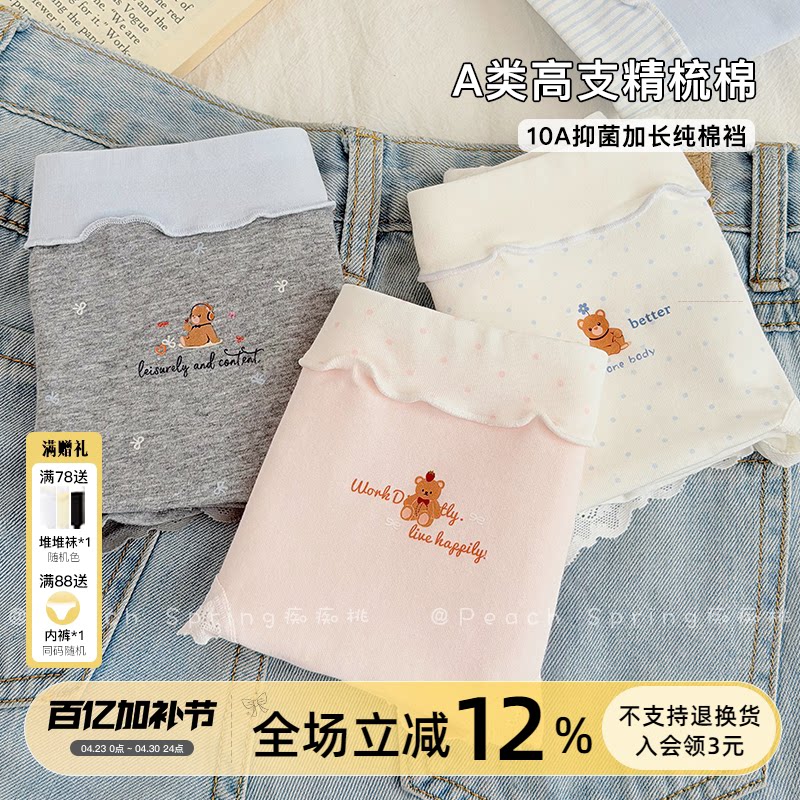 棉朵时光女士内裤浅色少女纯棉10A抗菌加长裆医用A类新疆高弹透气