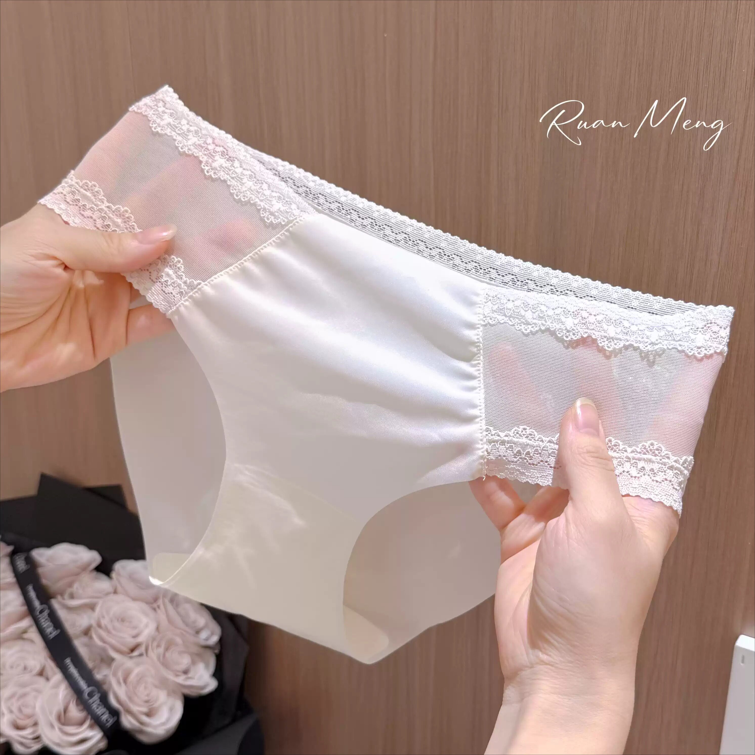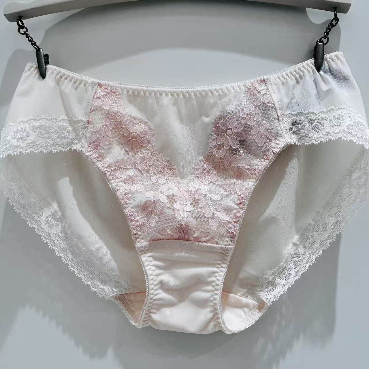 无痕高级法式性感冰丝奶皮内裤女士纯欲风蕾丝边低腰内裆纯棉薄款