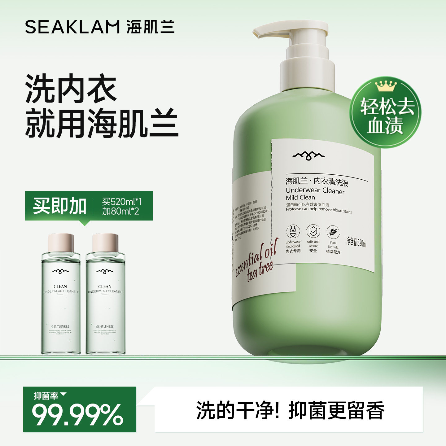 海肌兰内衣内裤清洗液孕妇女士专用去血渍除螨抑菌内衣裤专洗衣液