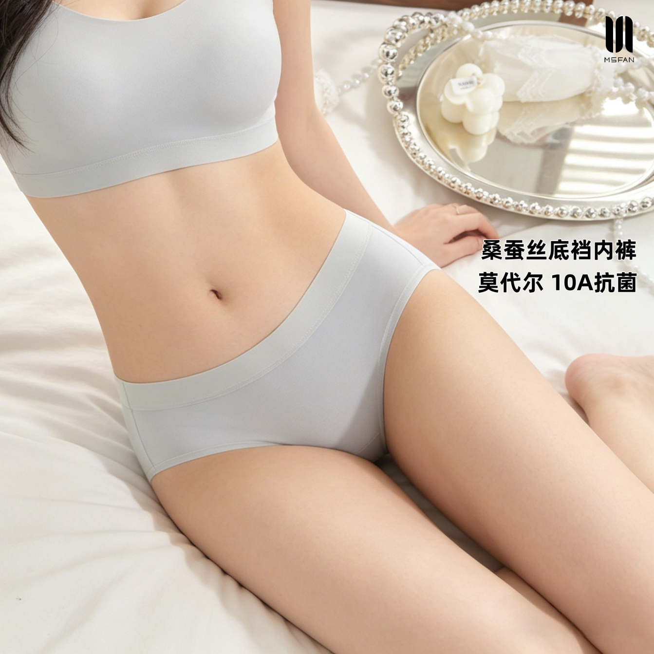 MS FAN桑蚕丝不夹臀三角裤女中腰透气无痕莫代尔内裤10A抗菌