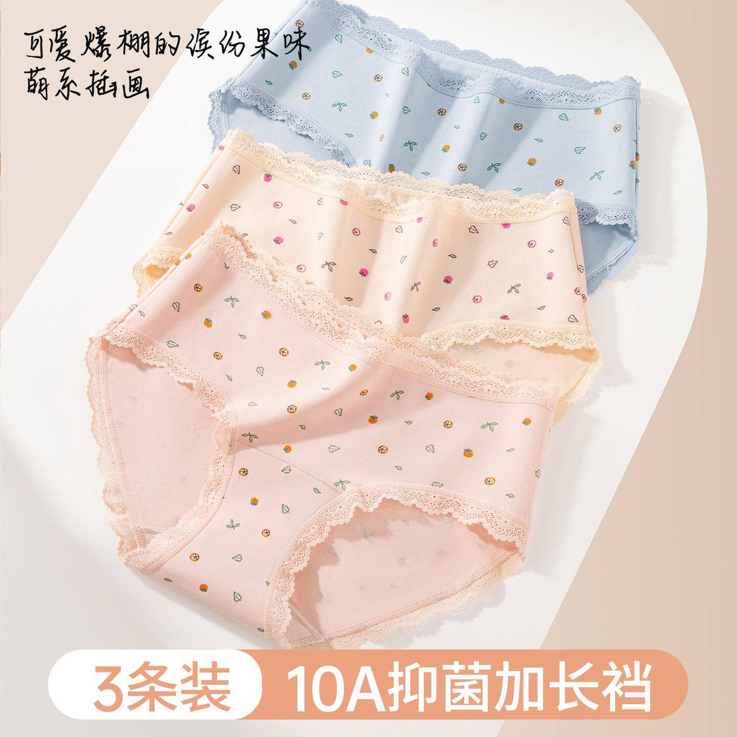 2026新款女士高腰纯棉内裤桑蚕丝抑菌高弹不夹臀加长裆女生三角裤