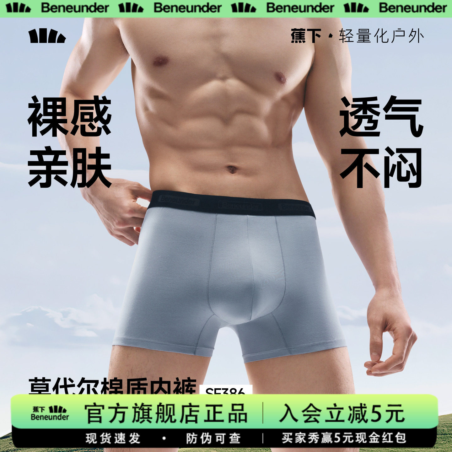 蕉下男士莫代尔内裤透气短裤不卡裆运动抗菌平角裤防夹臀四角内裤