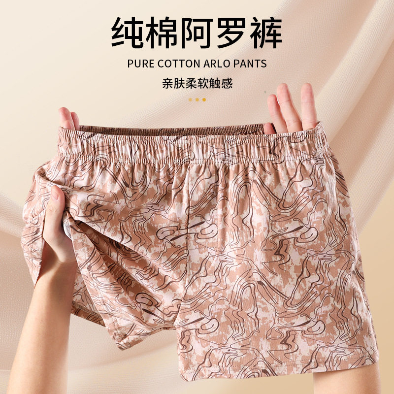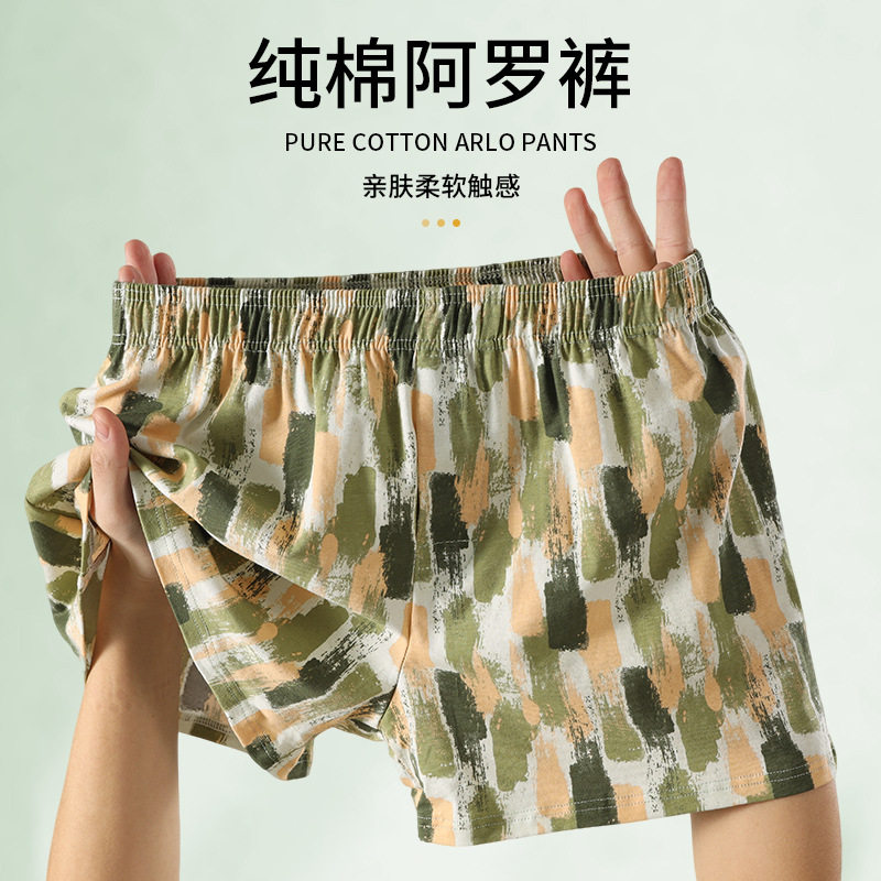 纯棉阿罗裤男士内裤舒适宽松透气平角可外穿薄款运动印花四角短裤
