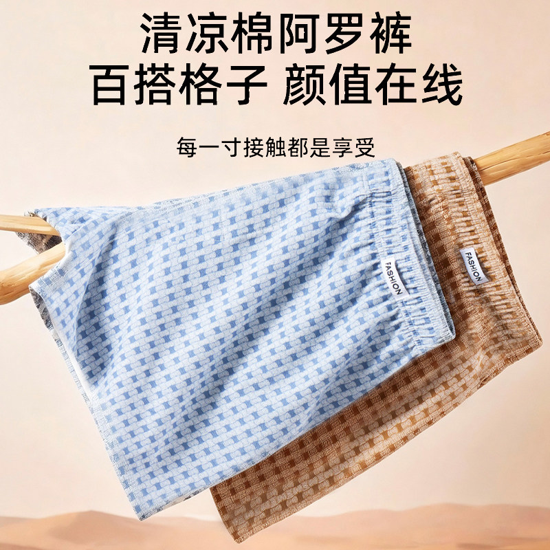 男士内裤四角裤头夏季新款青少年休闲短裤格子阿罗裤男平角短裤衩