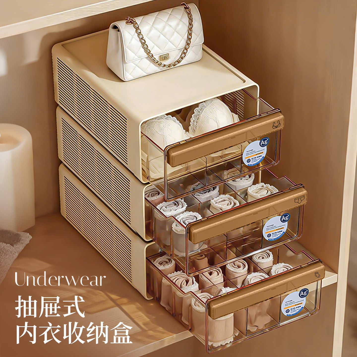 日本内衣内裤袜子三合一收纳盒家用2025新款抽屉式放内衣整理神器