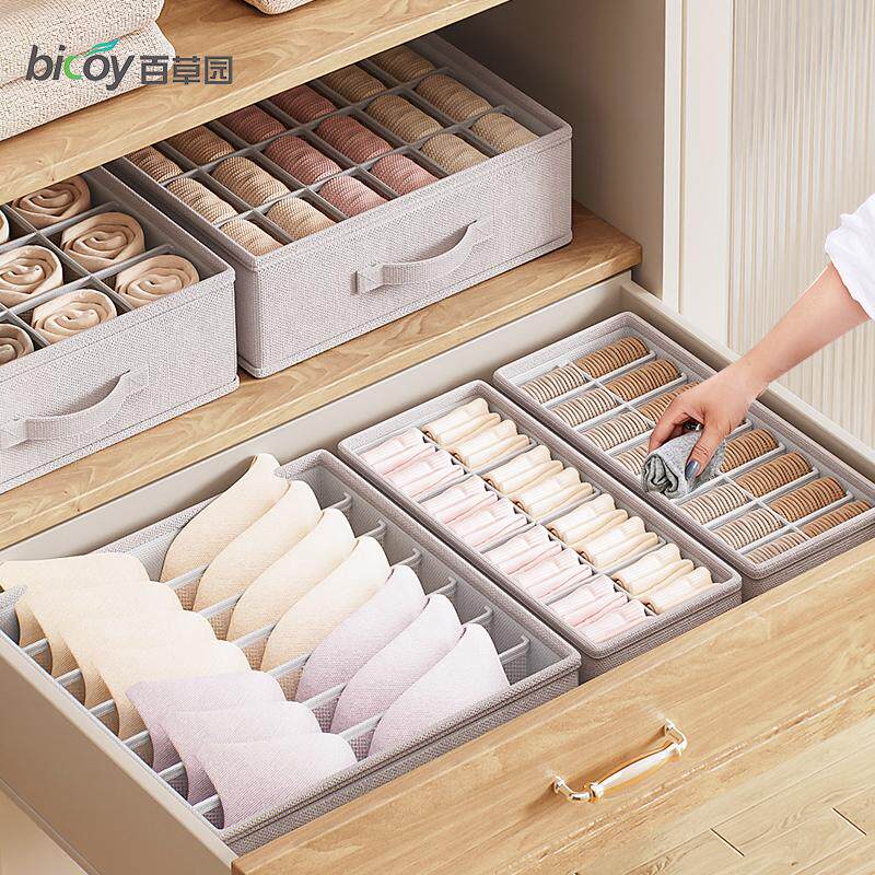 百草园内衣收纳盒抽屉式布艺分格整理盒家用内裤袜子贴身衣物盒子