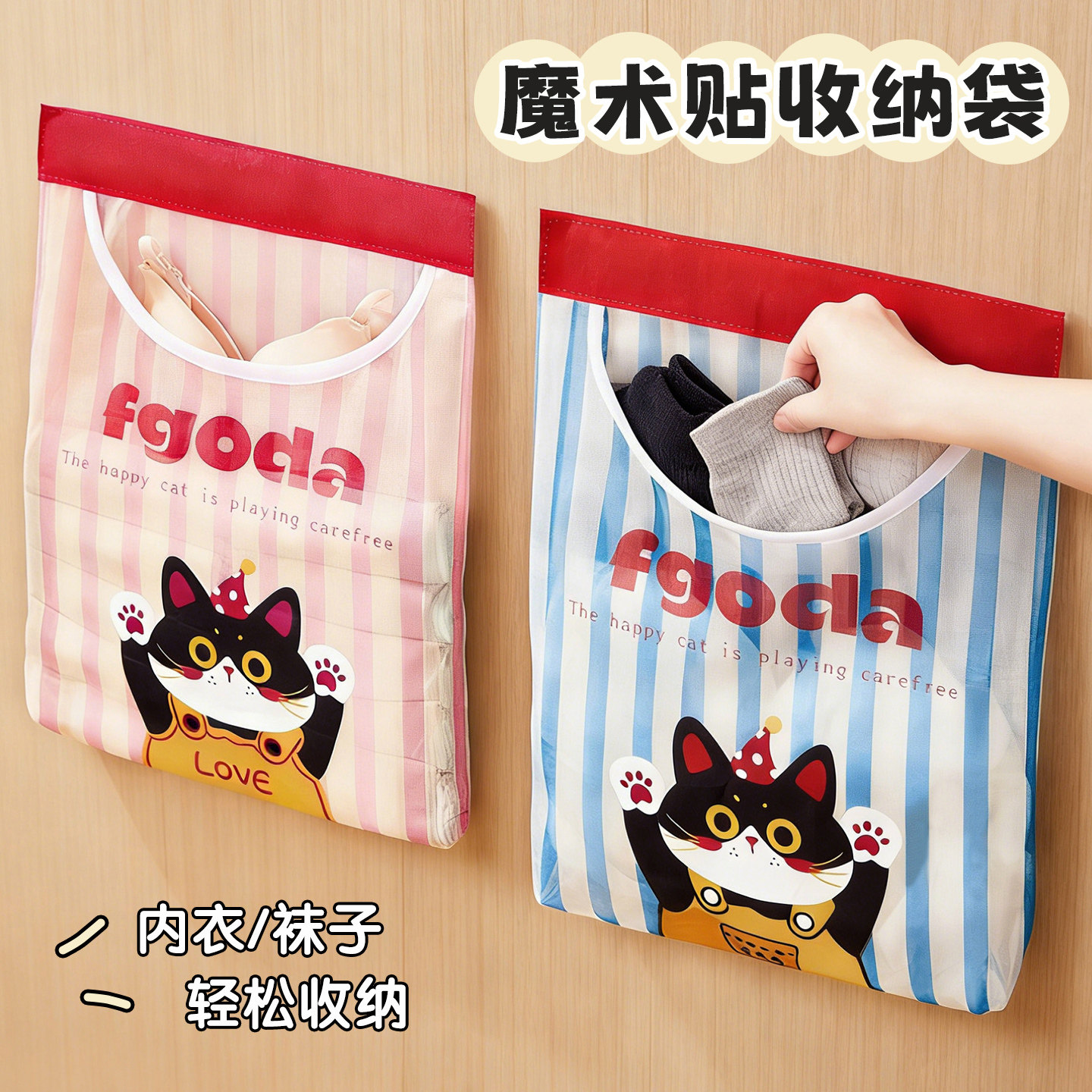 袜子收纳袋挂式魔术贴家用门后宿舍整理衣柜神器内衣内裤挂墙网兜