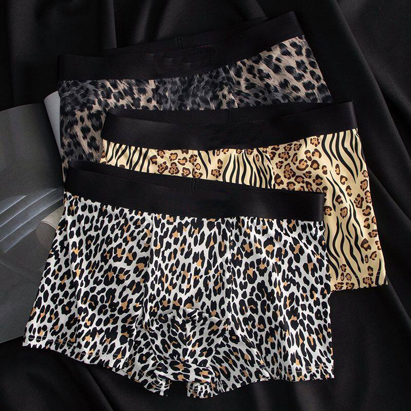 男士夏季内裤豹纹冰丝平角舒适透气潮流男生性感个性裤头四角短裤