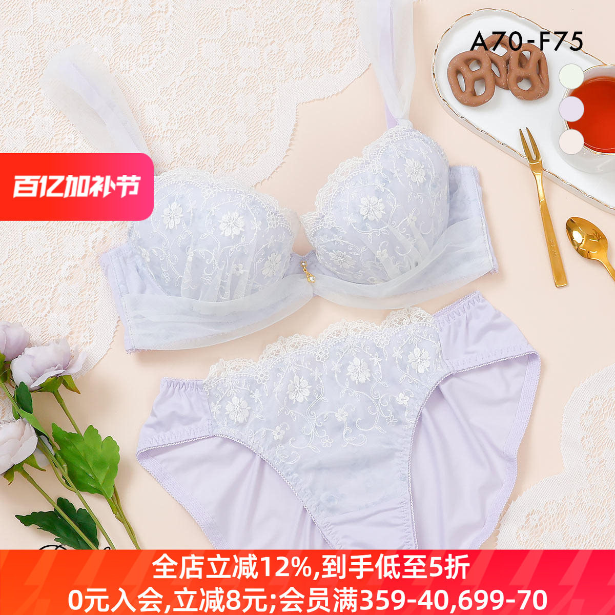 诗萝涵朵SHIROHATO内衣套装女上托防下垂日系可爱纯欲文胸罩内裤