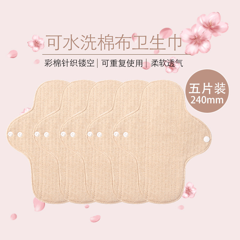240mm五片装针织镂空彩棉布纯棉可水洗卫生巾内裤垫透气不闷热销