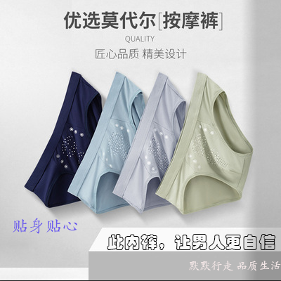 男士莫代尔颗粒按摩内裤石墨烯中腰青年三角裤新款弹力大码短裤头