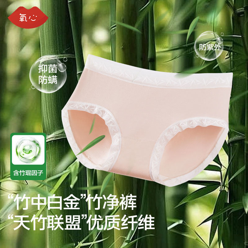 【10条装】YANGXIN氧心竹净中腰内裤抑菌花边无痕简约女士内裤