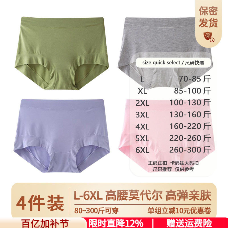 4条装莫代尔内裤女棉内裤中腰高腰内裤收腹透气三角裤加大码内裤