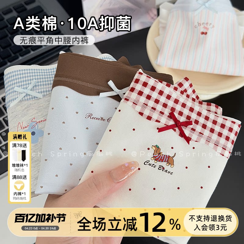 A类棉小平角包臀内裤女透气亲肤不闷热10A抑菌纯棉加长裆碎花品质