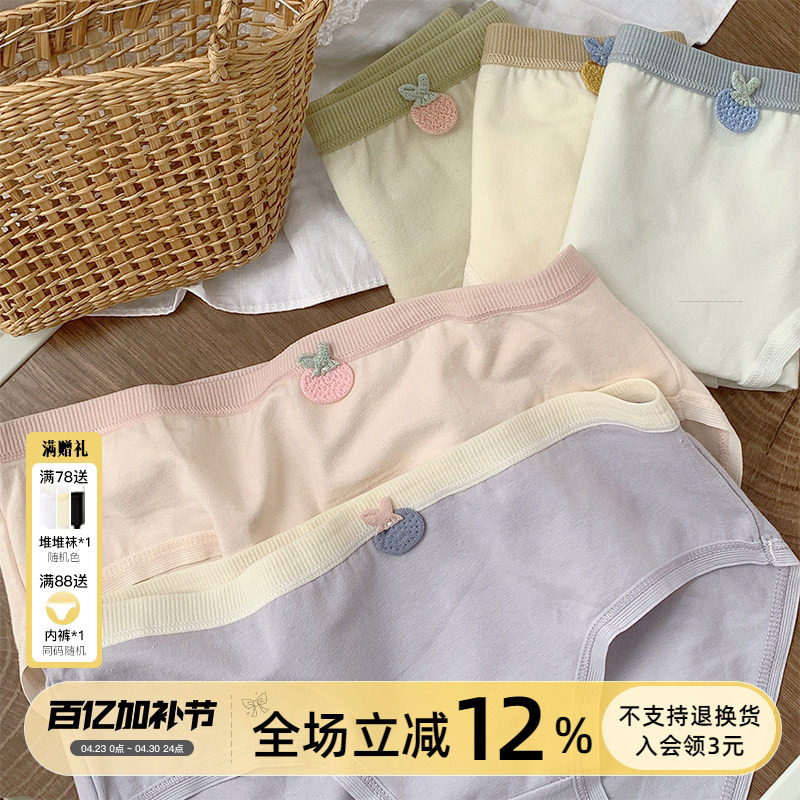 咬一口草莓@5条装内裤纯棉少女学生全棉裆舒适ins简约可爱三角裤