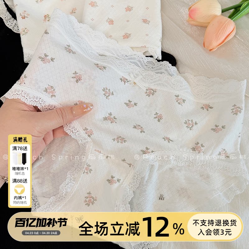 「冰点珍珠」7A级抗菌碎花内裤女生中腰蕾丝桑蚕丝裆2026夏薄透气