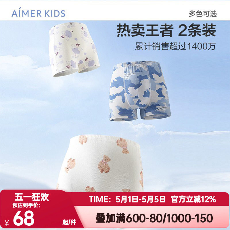 爱慕儿童男女童内裤莫木代尔平角裤女生抗菌薄款高弹学生四角内裤
