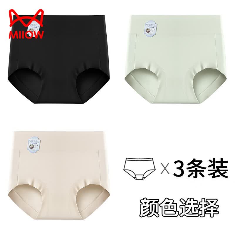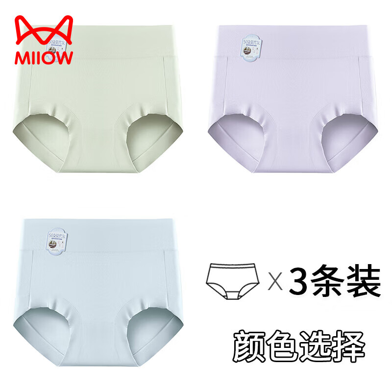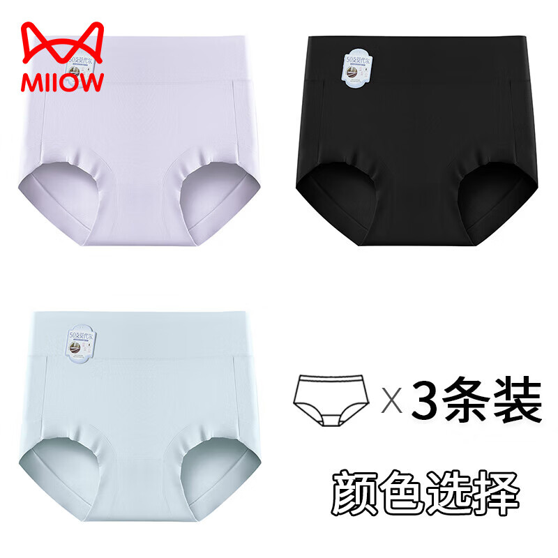 猫人莫代尔内裤女士7A抗菌裆无痕高腰收腹女生三角短裤头夏季薄款 紫色+黑色+蓝色 3条 2XL 适合【130-145斤】