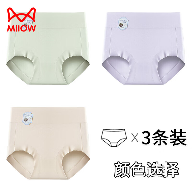 猫人莫代尔内裤女士7A抗菌裆无痕高腰收腹女生三角短裤头夏季薄款 绿色+紫色+蓝色 3条 2XL 适合【130-145斤】