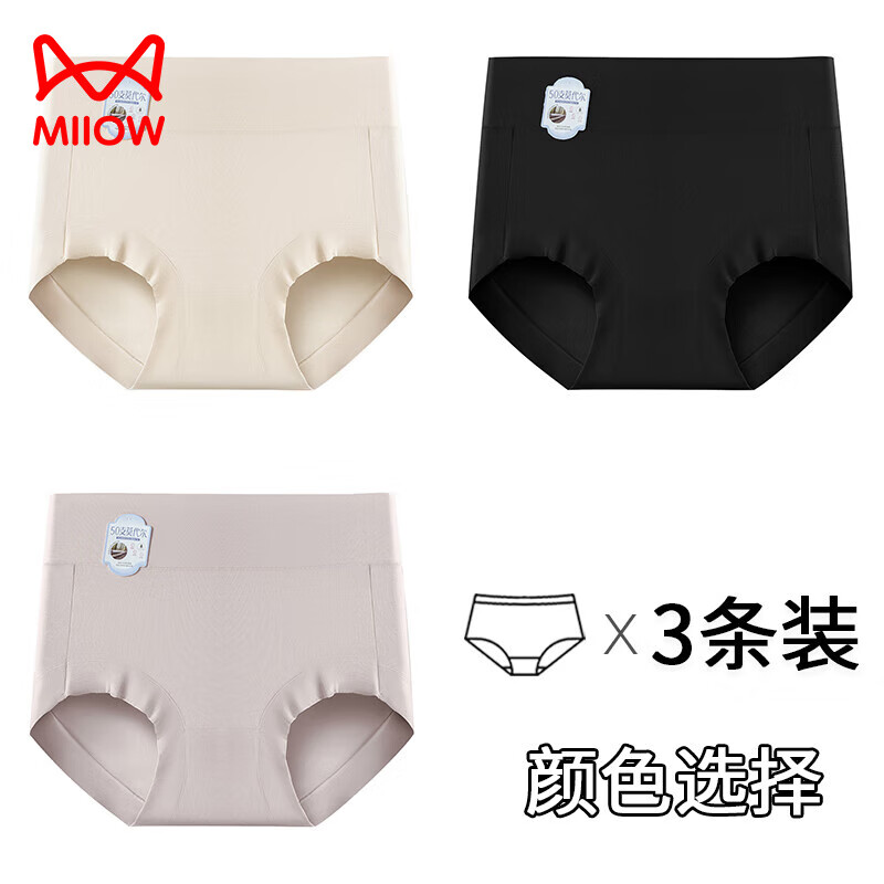 猫人莫代尔内裤女士7A抗菌裆无痕高腰收腹女生三角短裤头夏季薄款 肤色+黑色+蓝色 3条 2XL 适合【130-145斤】