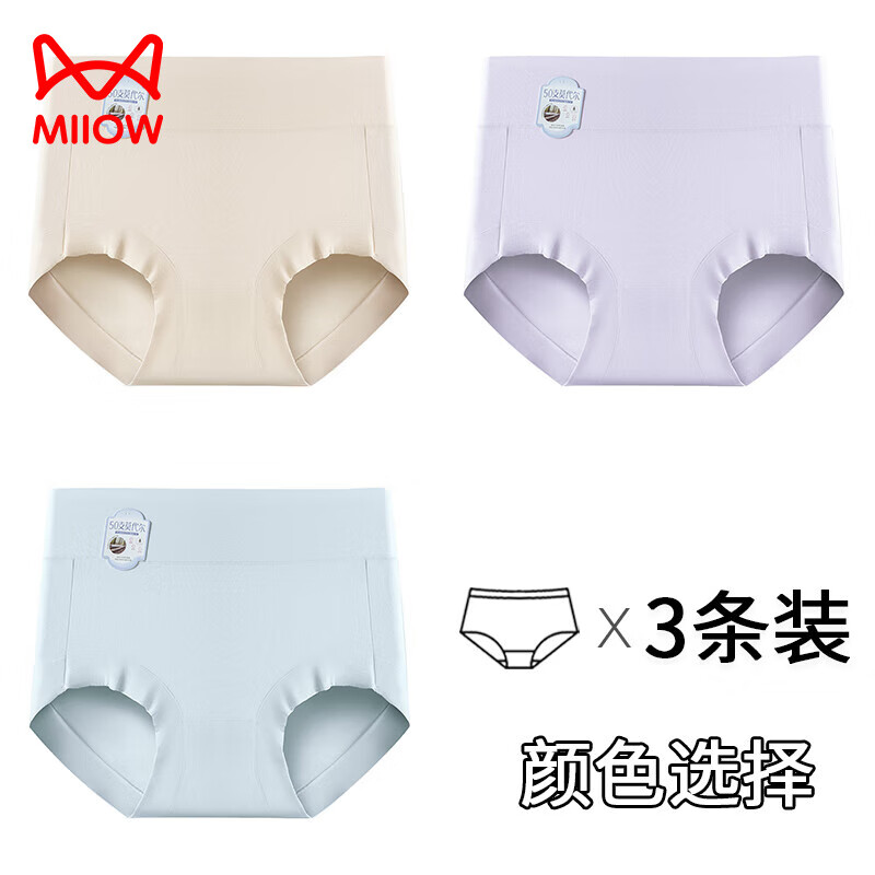 猫人莫代尔内裤女士7A抗菌裆无痕高腰收腹女生三角短裤头夏季薄款 肤色+紫色+蓝色 3条 2XL 适合【130-145斤】