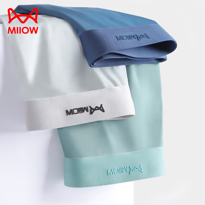 猫人(MiiOW)冰丝内裤男士平角无痕薄款内裤舒适抗菌夏季大码四角短裤衩男生 浅灰_果绿_蓝色 3条 2XL 【建议125-145斤】