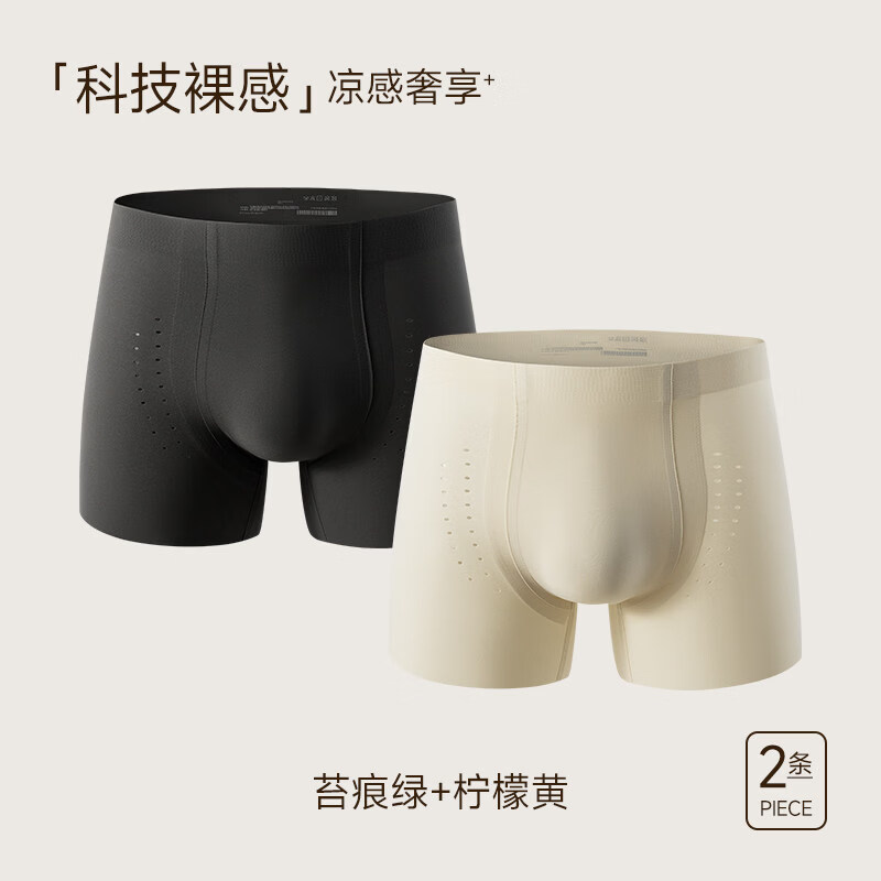 CEENIU素放男士内裤冰丝2026新款高端无痕裸感透气孔无缝一片式内裤男款 苔痕绿+柠檬黄 【装】 2条 3XL 【190-210斤】