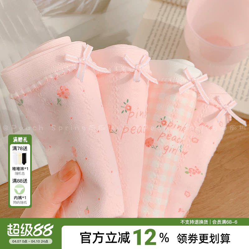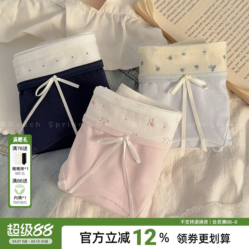 花间辞~纯棉内裤少女粉色可爱甜美透气包臀女生中腰三角学生碎花