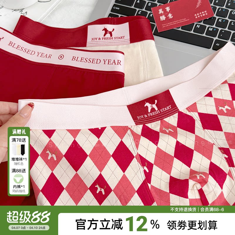 『以梦为马』天选本命红!A类棉男士平角内裤舒适纯棉10A抑菌四角