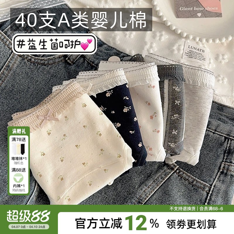 10A抑菌碎花女士内裤2025新款中腰纯棉底裆舒适包臀三角裤