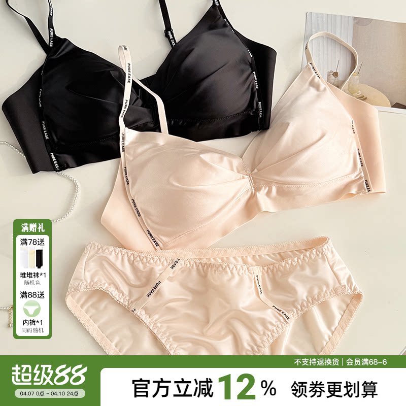 「奶油布偶」法式纯欲缎面ab杯内衣性感三角杯薄款文胸内裤两件套