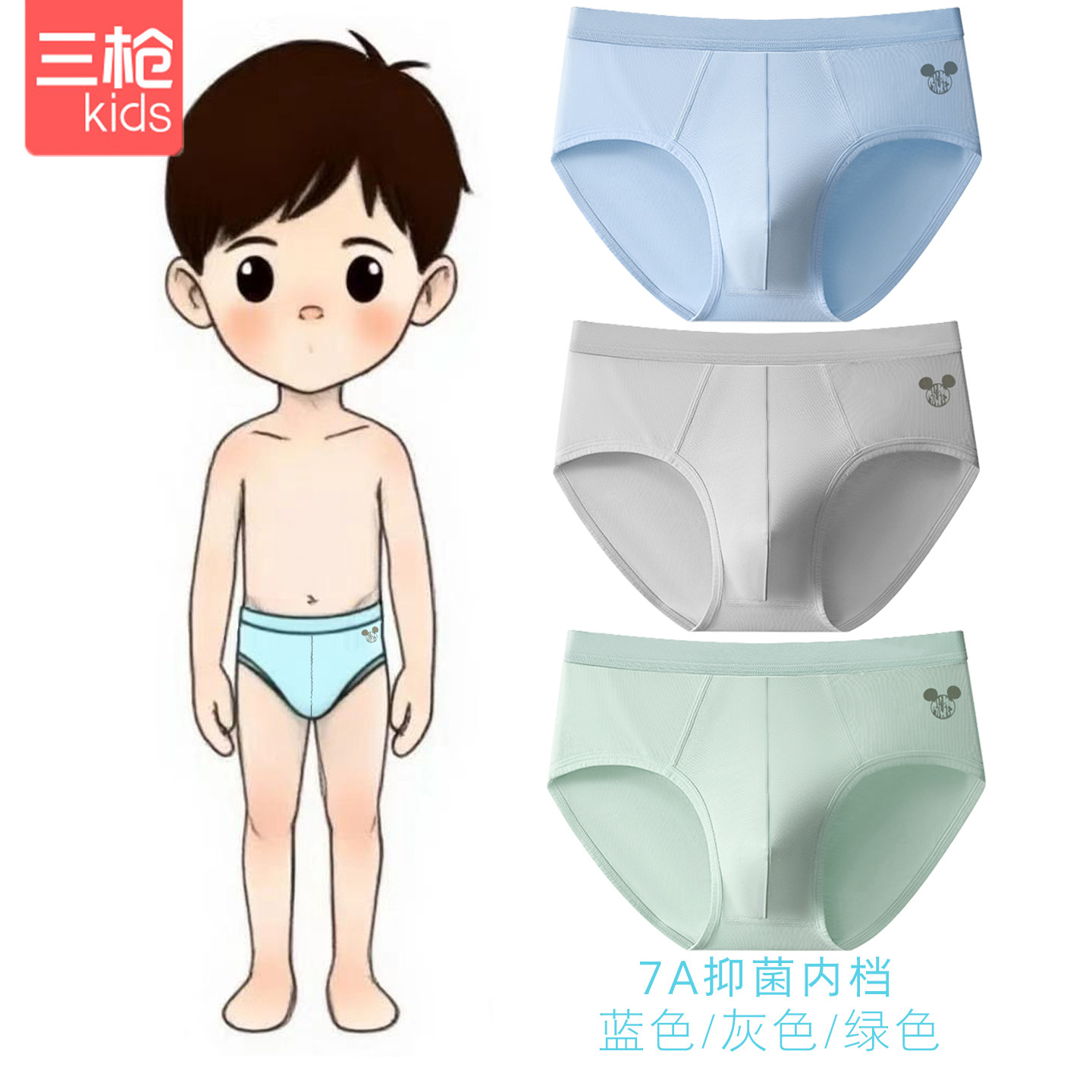 三枪儿童迪士尼印花可爱【三条装】男童抑菌内档白蓝灰绿宽腰内裤