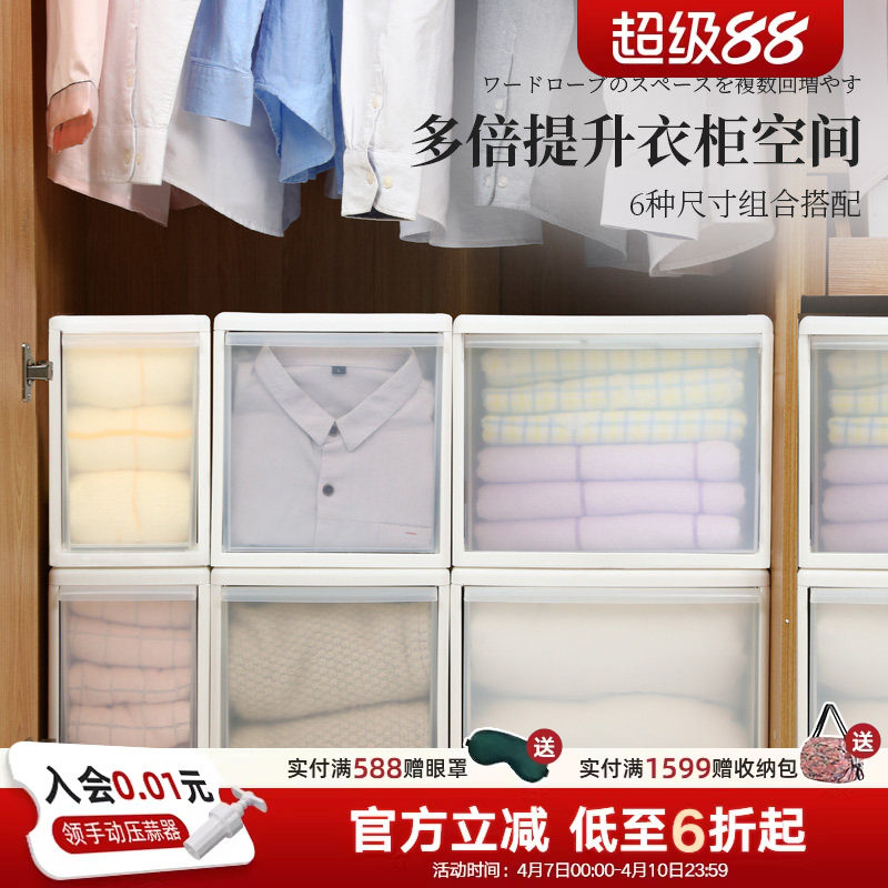 利快进口收纳箱日本抽屉式成衣内裤收纳盒家用塑料衣柜杂物整理箱