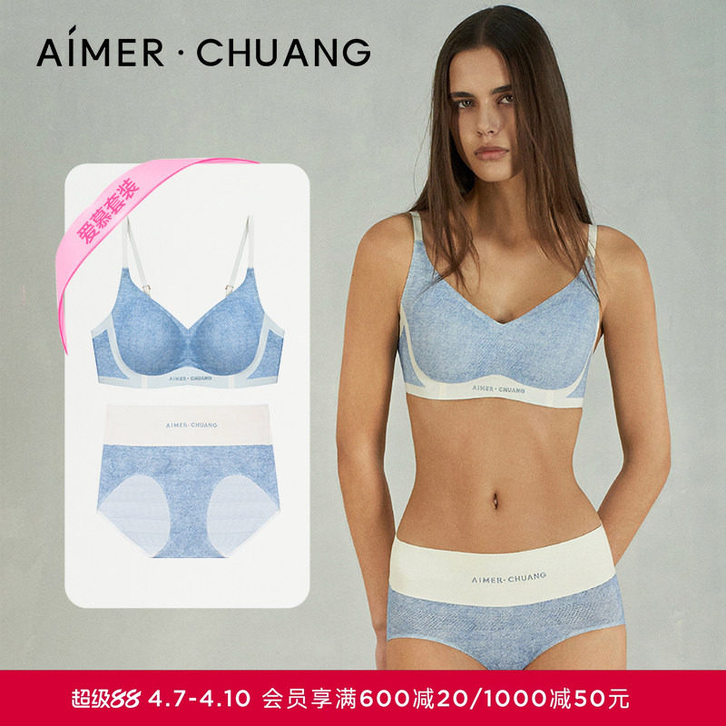 AIMER CHUANG明动4内衣女V领背心式无钢圈舒适文胸内裤套装