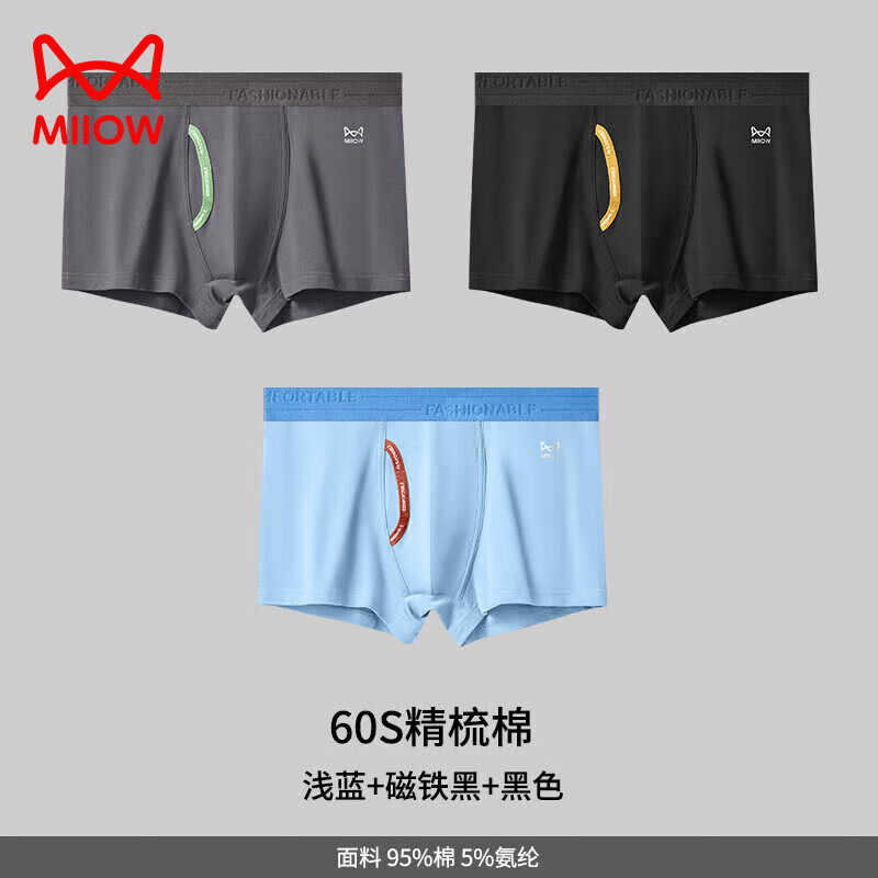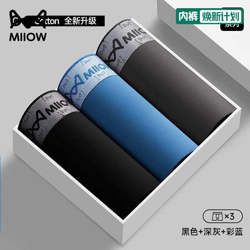 猫人男士内裤纯棉四角裤2026新款夏季透气抑菌裆男款大码平角裤 黑色+深灰+彩蓝 3条 2XL 【建议140-160斤】