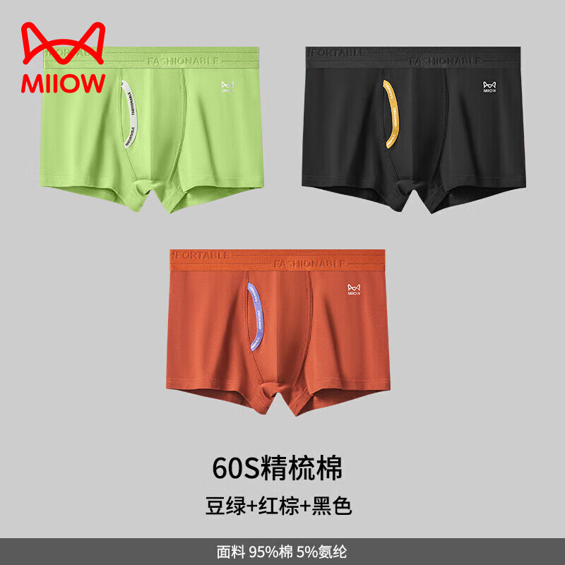 猫人男士内裤男纯棉前开口透气平角裤抗菌短裤男生四角2026款夏季 【3条装】豆绿+红棕+黑色 2XL 【推荐140-160斤】