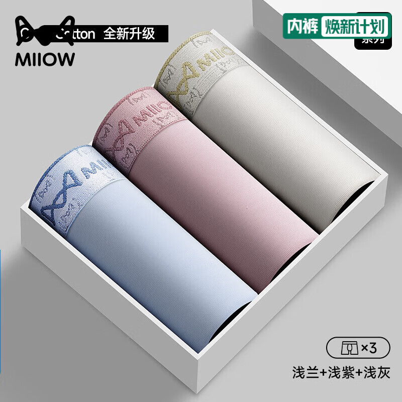 猫人男士内裤纯棉四角裤2026新款夏季透气抑菌裆男款大码平角裤 浅兰+浅紫+浅灰 3条 2XL 【建议140-160斤】