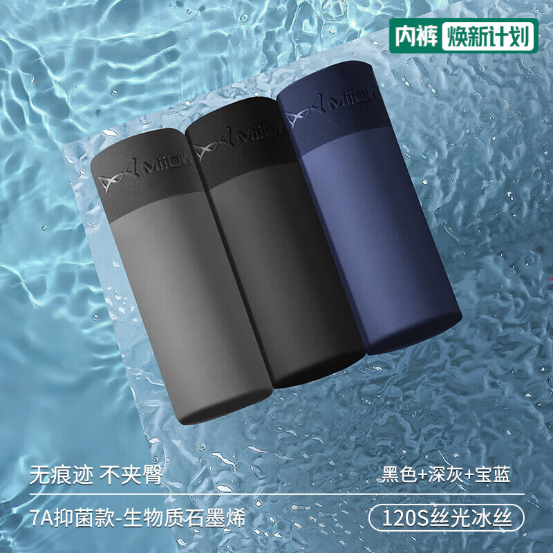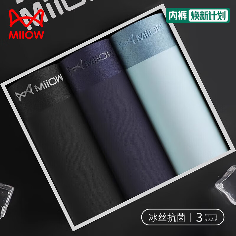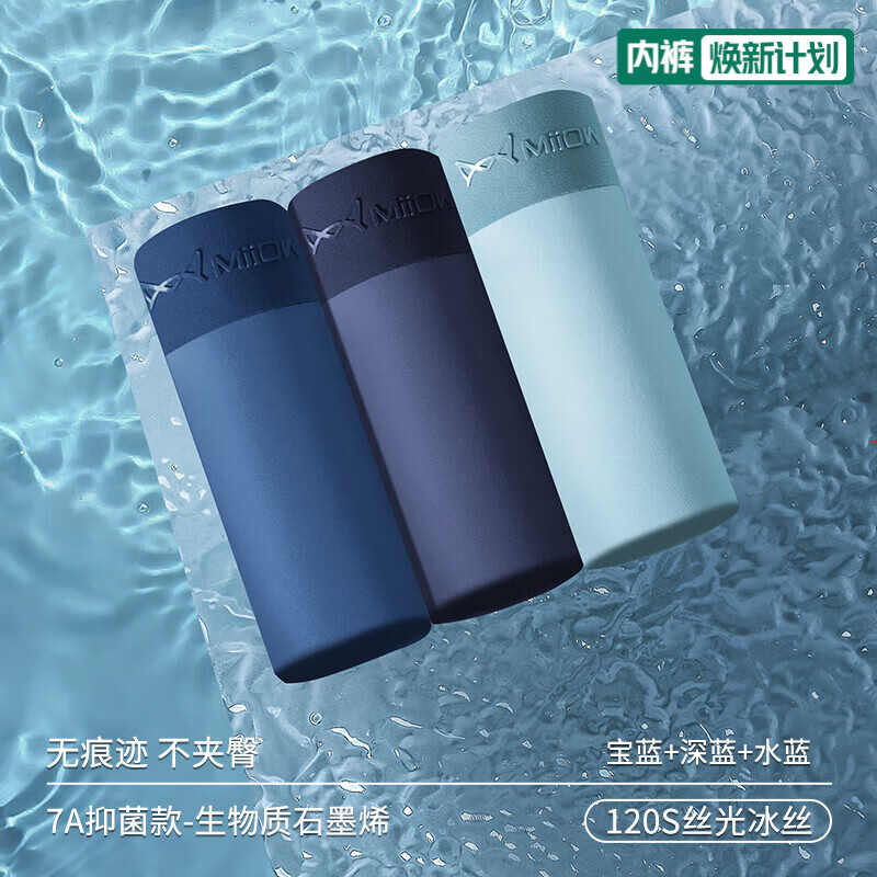 猫人内裤男士冰丝平角裤无痕薄款抗菌裆四角短裤透气裤衩夏季 宝蓝+深蓝+水蓝 3条 2XL (建议130-150斤)
