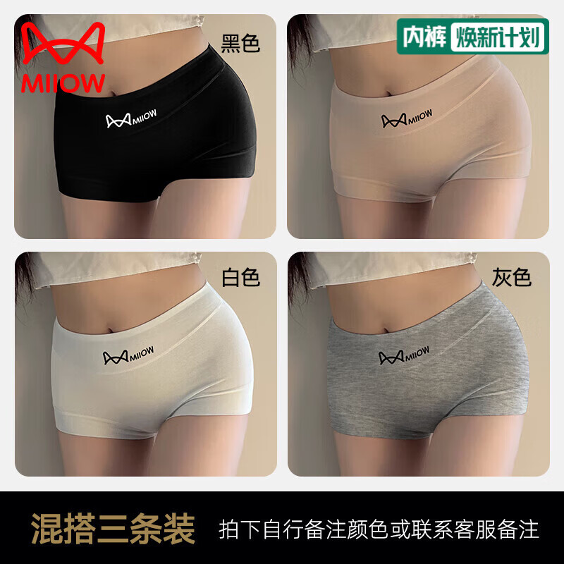 猫人内裤女生纯棉抑菌棉裆秋冬女士大码四角包臀防夹臀平角短裤 混搭 3条 2XL 【建议体重140-160斤】
