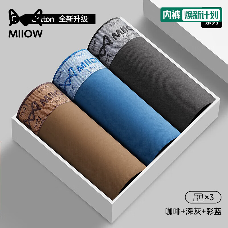 猫人男士内裤纯棉四角裤2026新款夏季透气抑菌裆男款大码平角裤 咖啡+深灰+彩蓝 3条 2XL 【建议140-160斤】