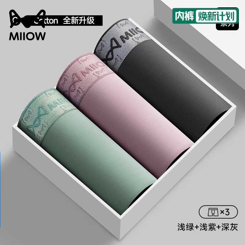 猫人男士内裤纯棉四角裤2026新款夏季透气抑菌裆男款大码平角裤 浅绿+浅紫+深灰 3条 2XL 【建议140-160斤】