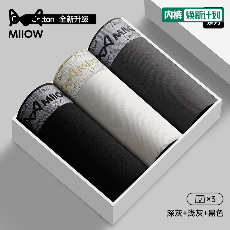 猫人男士内裤纯棉四角裤2026新款夏季透气抑菌裆男款大码平角裤 深灰+浅灰+黑色 3条 2XL 【建议140-160斤】