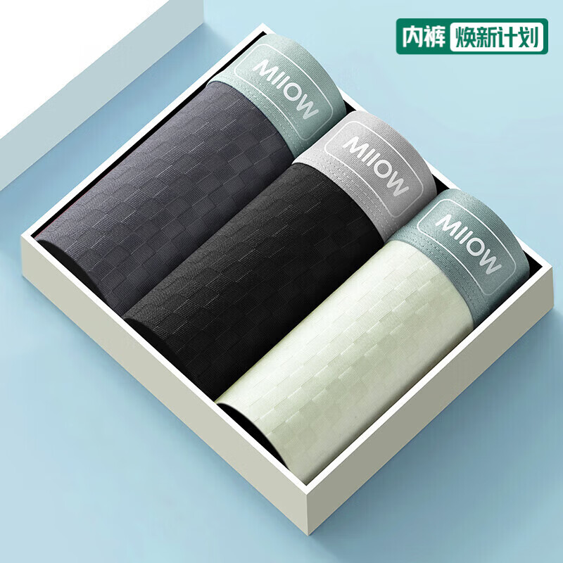 猫人内裤男士冰丝平角裤无痕薄款抗菌裆四角短裤透气裤衩夏季 水蓝+浅灰+深灰 3条 2XL (建议130-150斤)