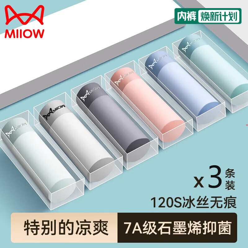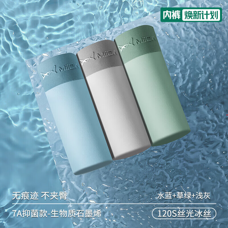猫人内裤男士冰丝平角裤无痕薄款抗菌裆四角短裤透气裤衩夏季 水蓝+草绿+浅灰 3条 2XL (建议130-150斤)