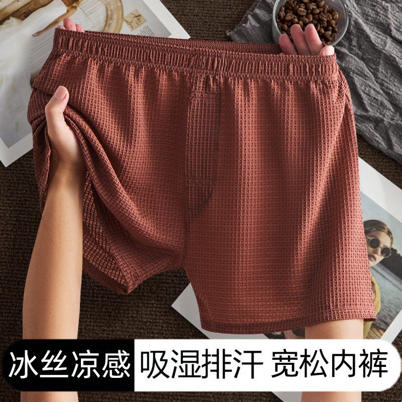 男士冰丝内裤阿罗裤冰丝宽松休闲大码短裤家居四角睡裤衩平角青年