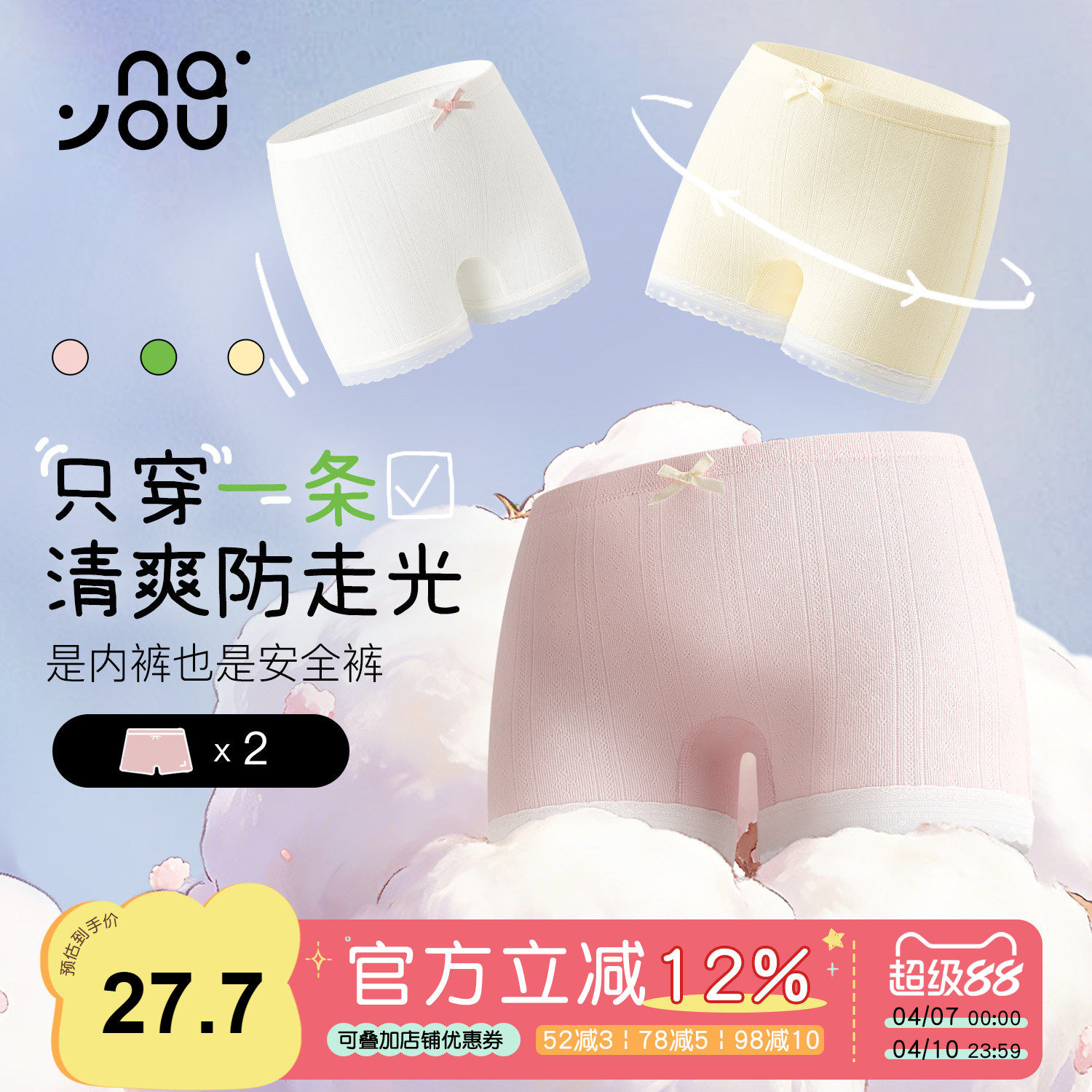 纳柚2026儿童纯棉安全裤女童夏季防走光四角打底内裤保险裤三合一