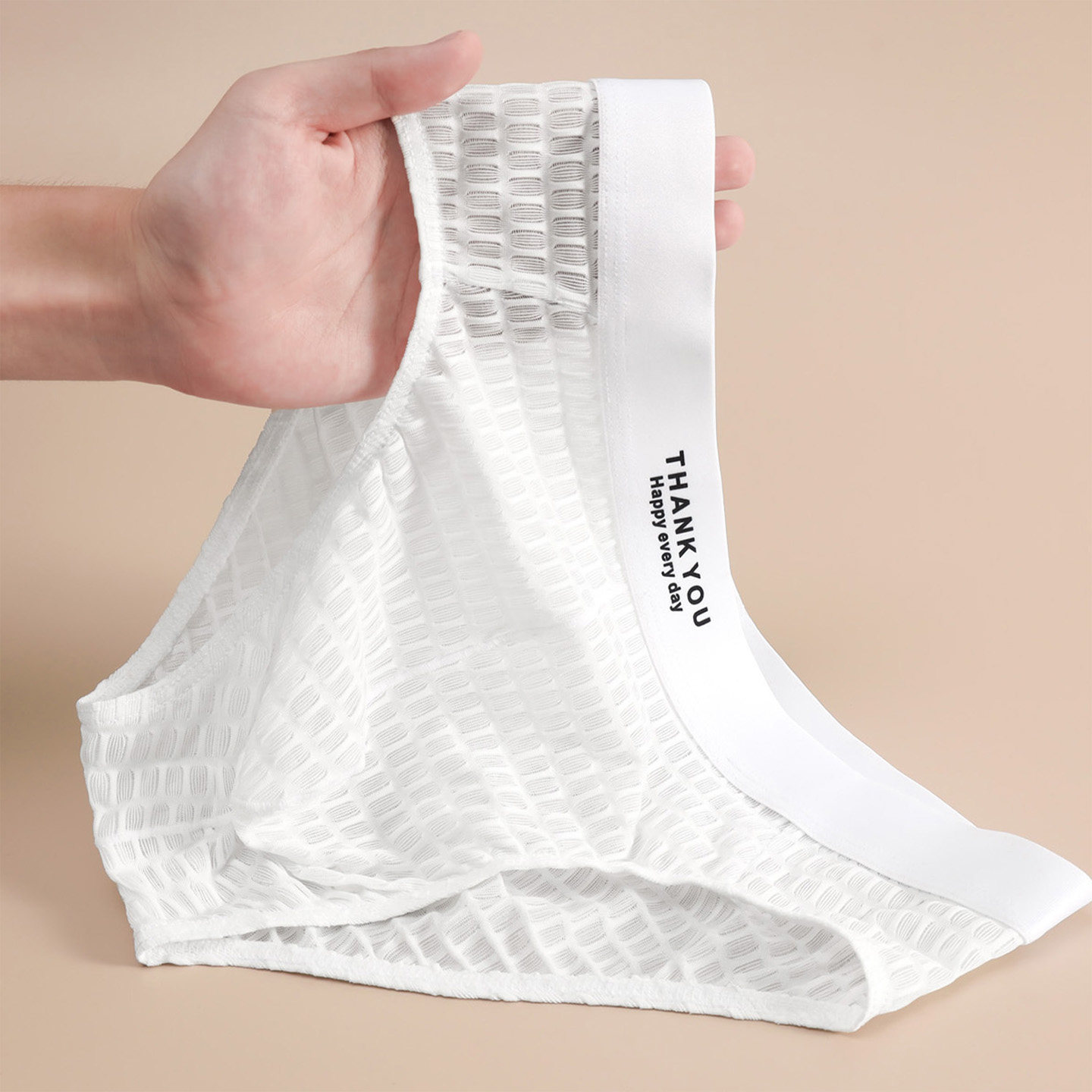夏季薄款男士内裤透明三角裤网纱冰丝青年简约纯色纯欲风内裤男
