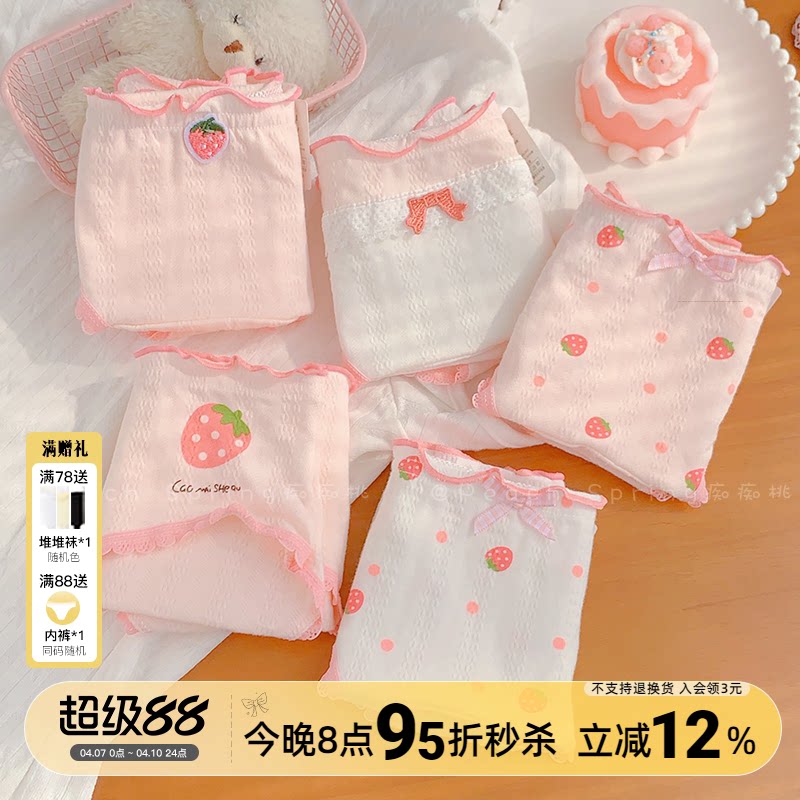 草莓啵啵~可爱粉色纯棉内裤女加长裆学生甜美少女三角裤A类抗菌裆