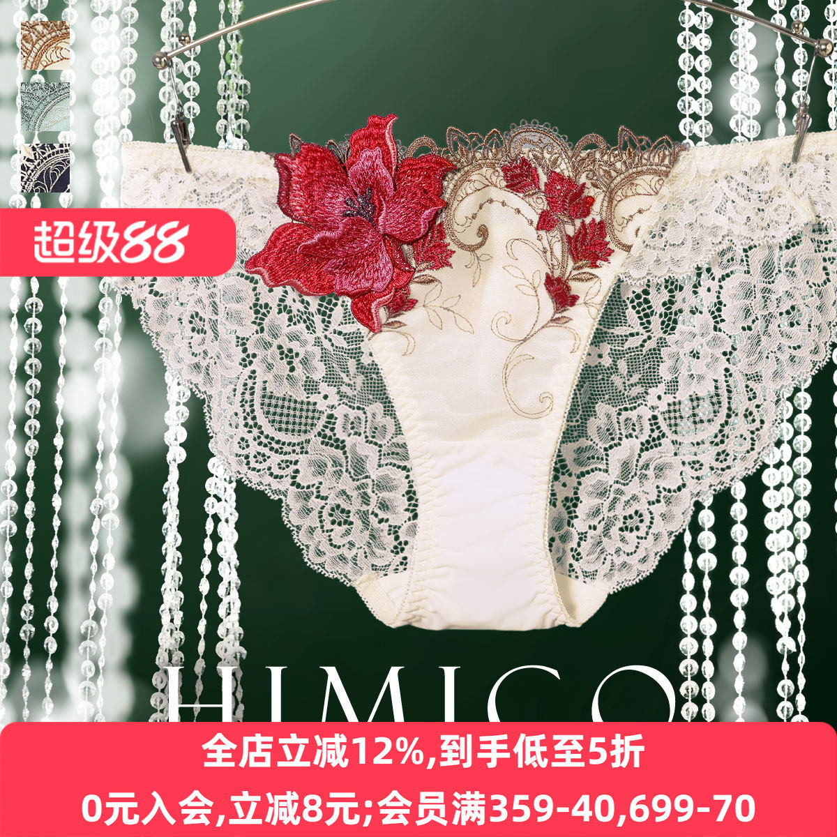 HIMICO内裤女重工立体刺绣日系透明蕾丝性感低腰无痕三角内裤031